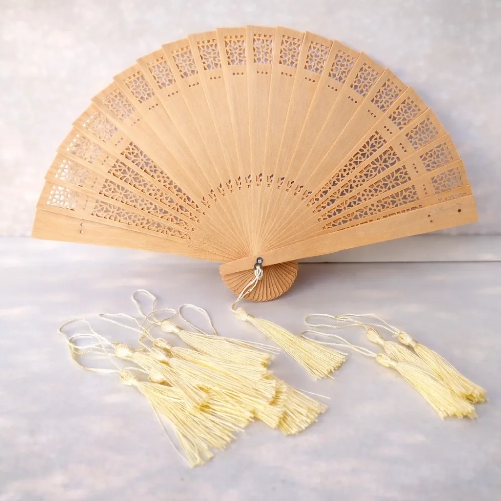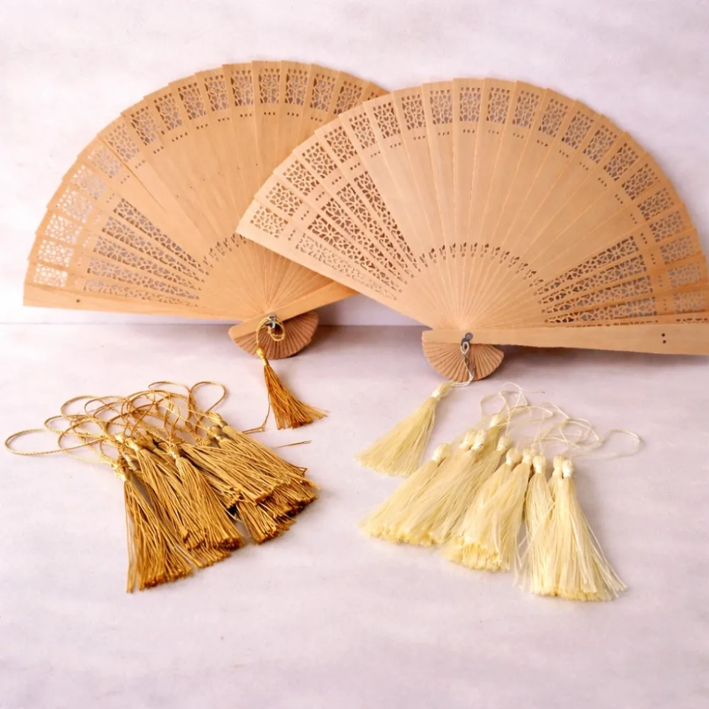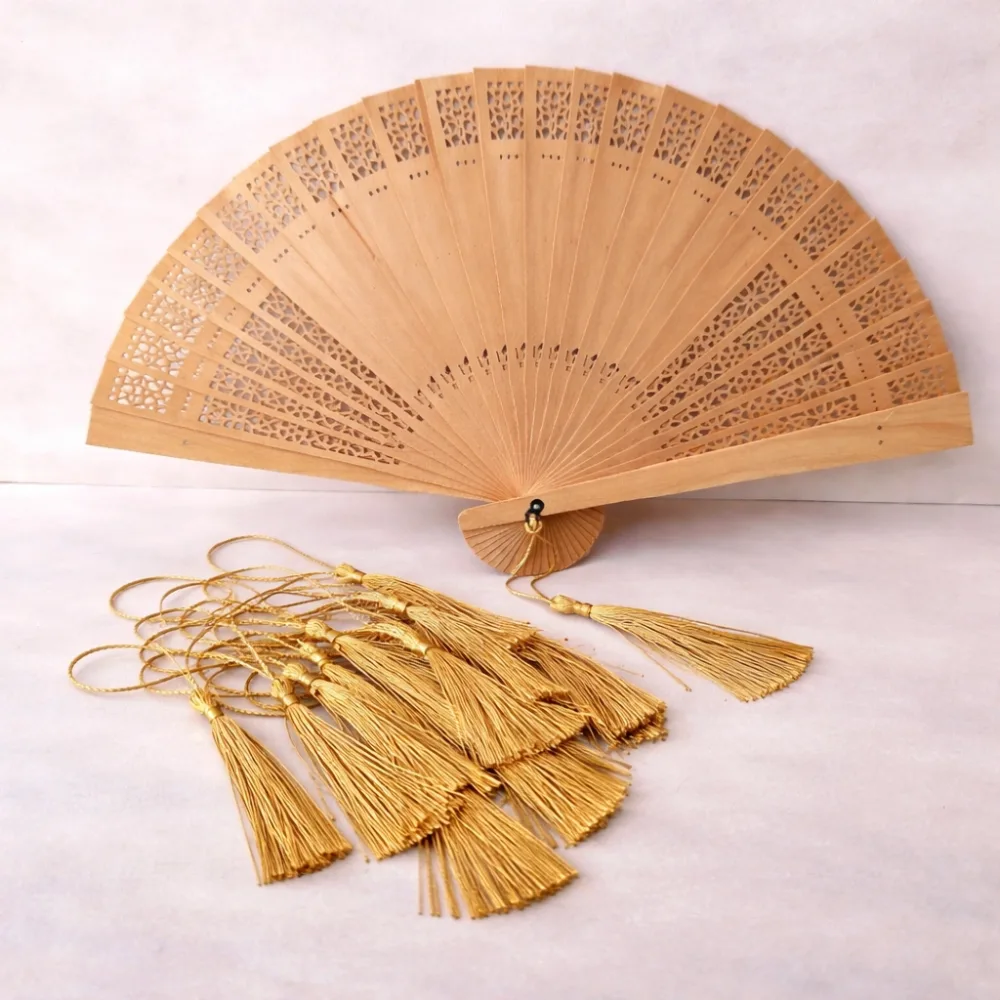 En Detalles Personalizados sabemos que cada boda es única, por eso trabajamos cada abanico de madera personalizado con mimo y precisión. Puedes elegir el modelo que mejor encaje con vuestro estilo: con borla blanca para un toque más tradicional o sin borla si buscas una estética minimalista.