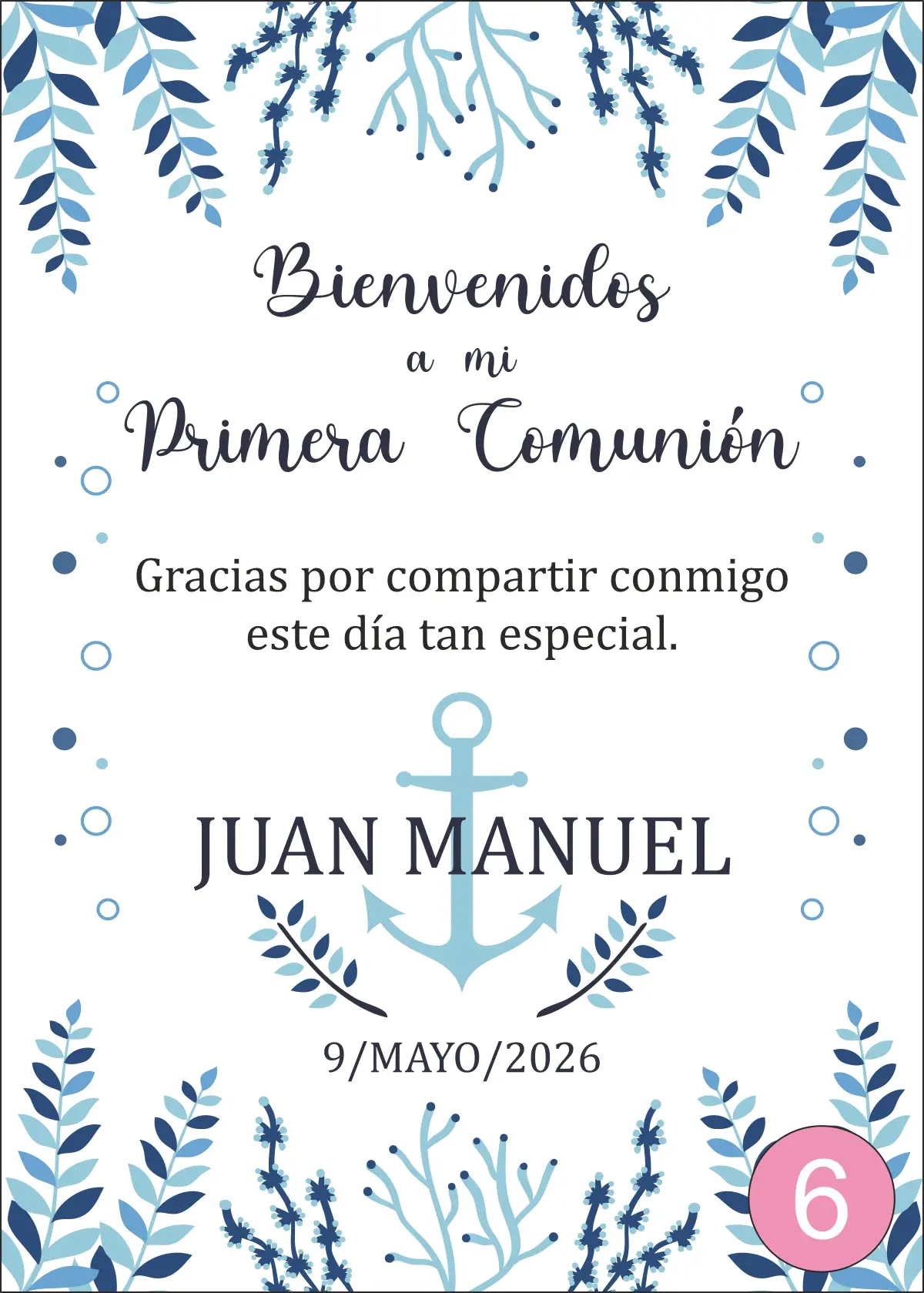 Primera impresión imborrable: Dar la bienvenida con un cartel personalizado no solo resulta acogedor, sino que también revela el cariño y la dedicación que has puesto en la organización de la comunión. Tus invitados se sentirán especial y apreciarán cada detalle desde el primer instante.