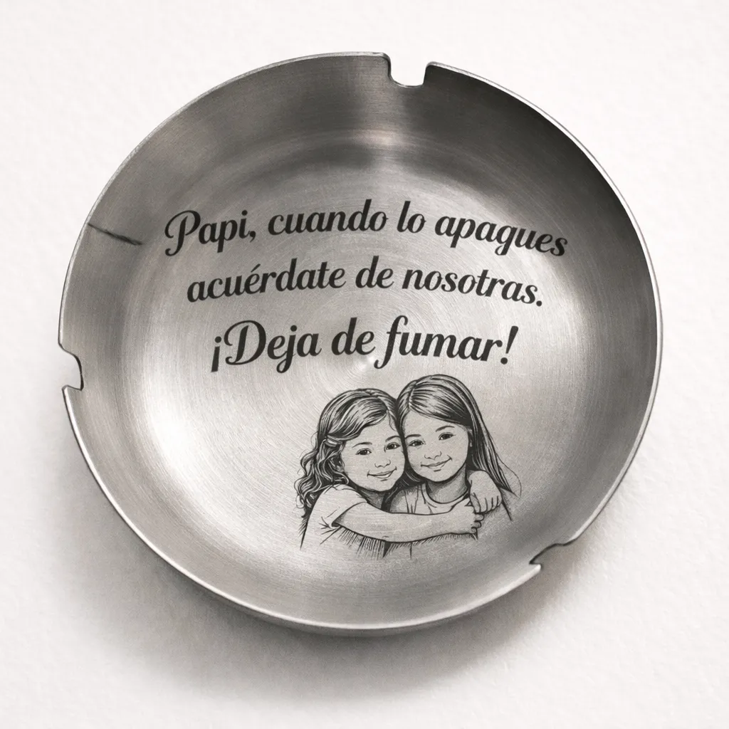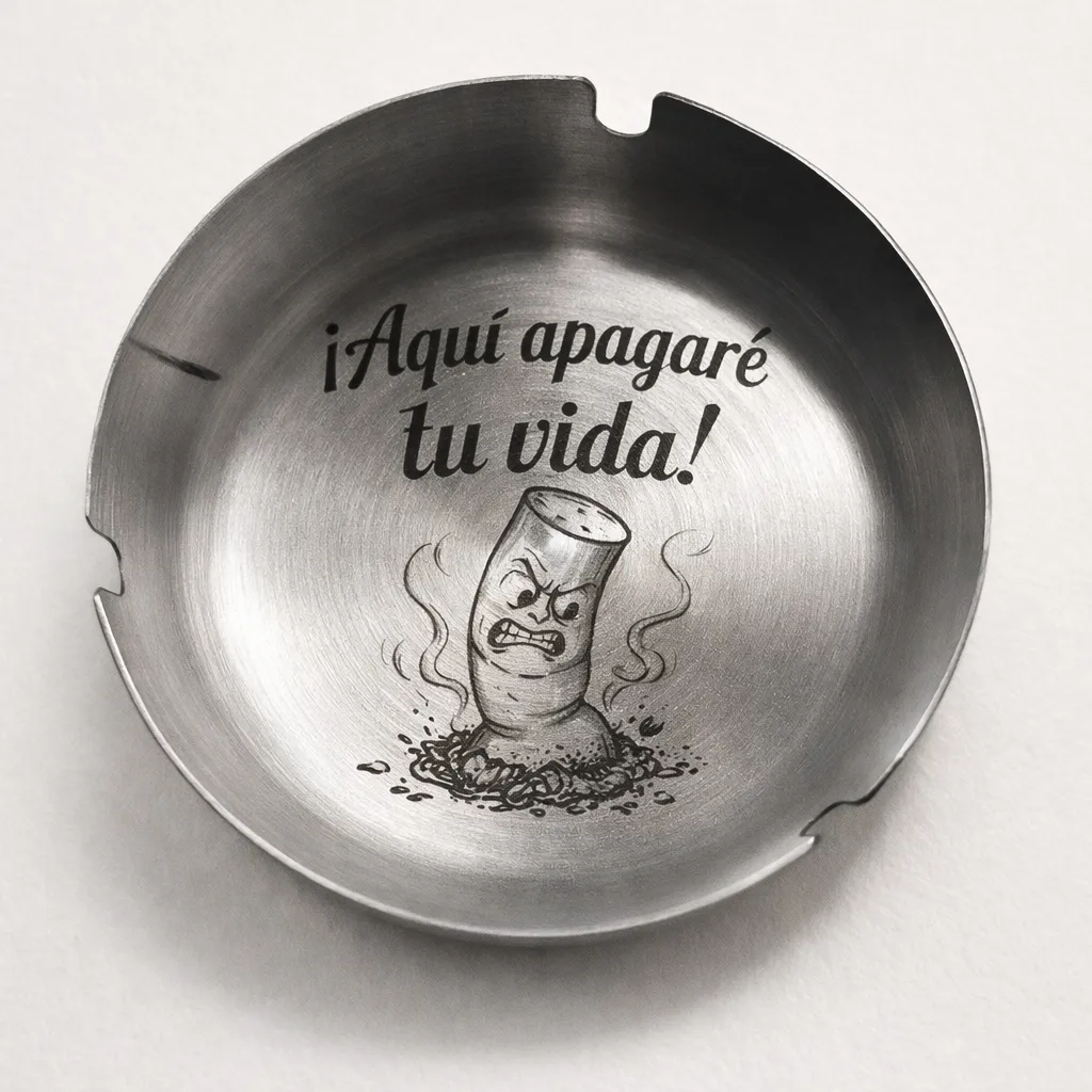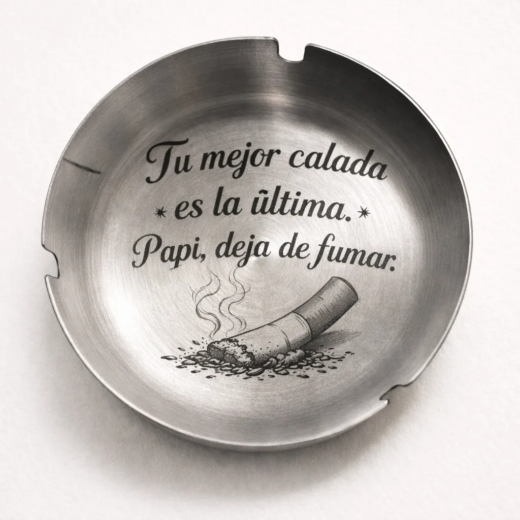 Este Cenicero Personalizado Acero está pensado para quienes quieren hacer un regalo útil, original y con un mensaje muy personal. Es un cenicero de metal fabricado en acero inoxidable, ideal para el día a día de cualquier persona fumadora: padres, madres, hermanos, amigos o pareja. 🎁