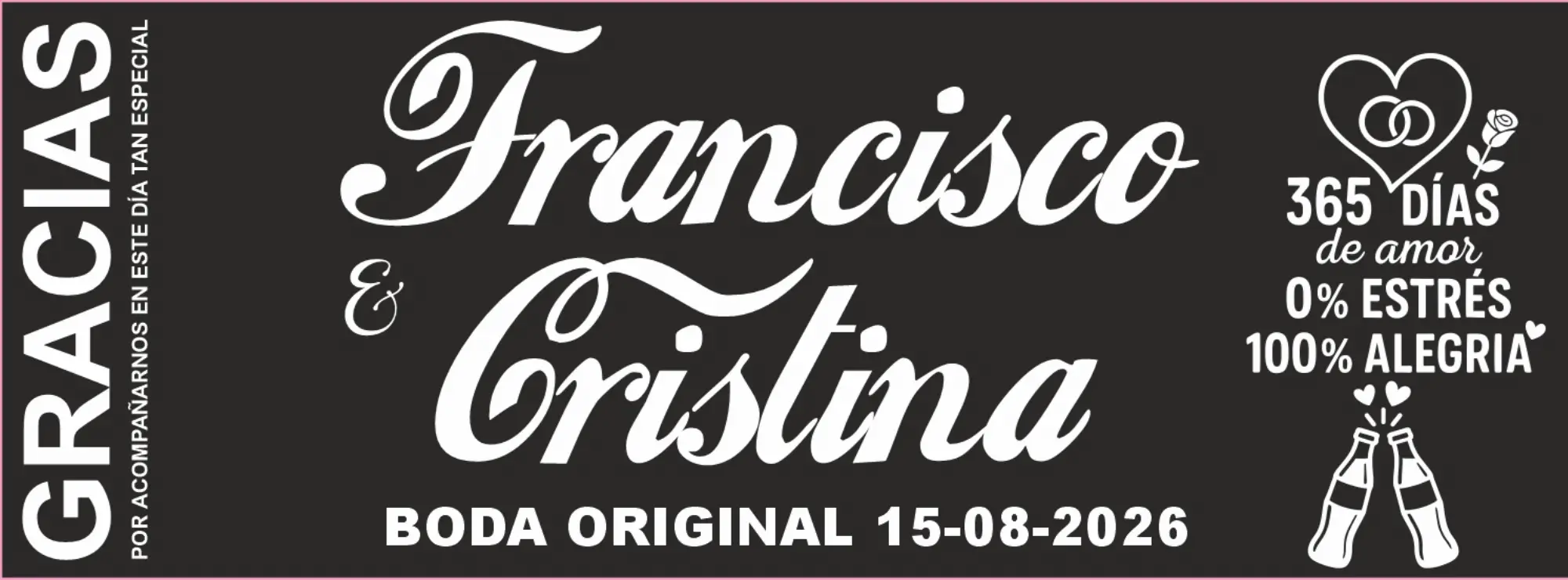 Estas pegatinas están diseñadas especialmente para eventos y celebraciones. Se imprimen en vinilo transparente con texto blanco, adaptado al tipo de evento que celebres: boda, comunión, bautizo, cumpleaños… ¡o lo que tú quieras! Personaliza cada botella con nombres, fechas o frases, y sorprende a todos con un toque creativo y lleno de personalidad.