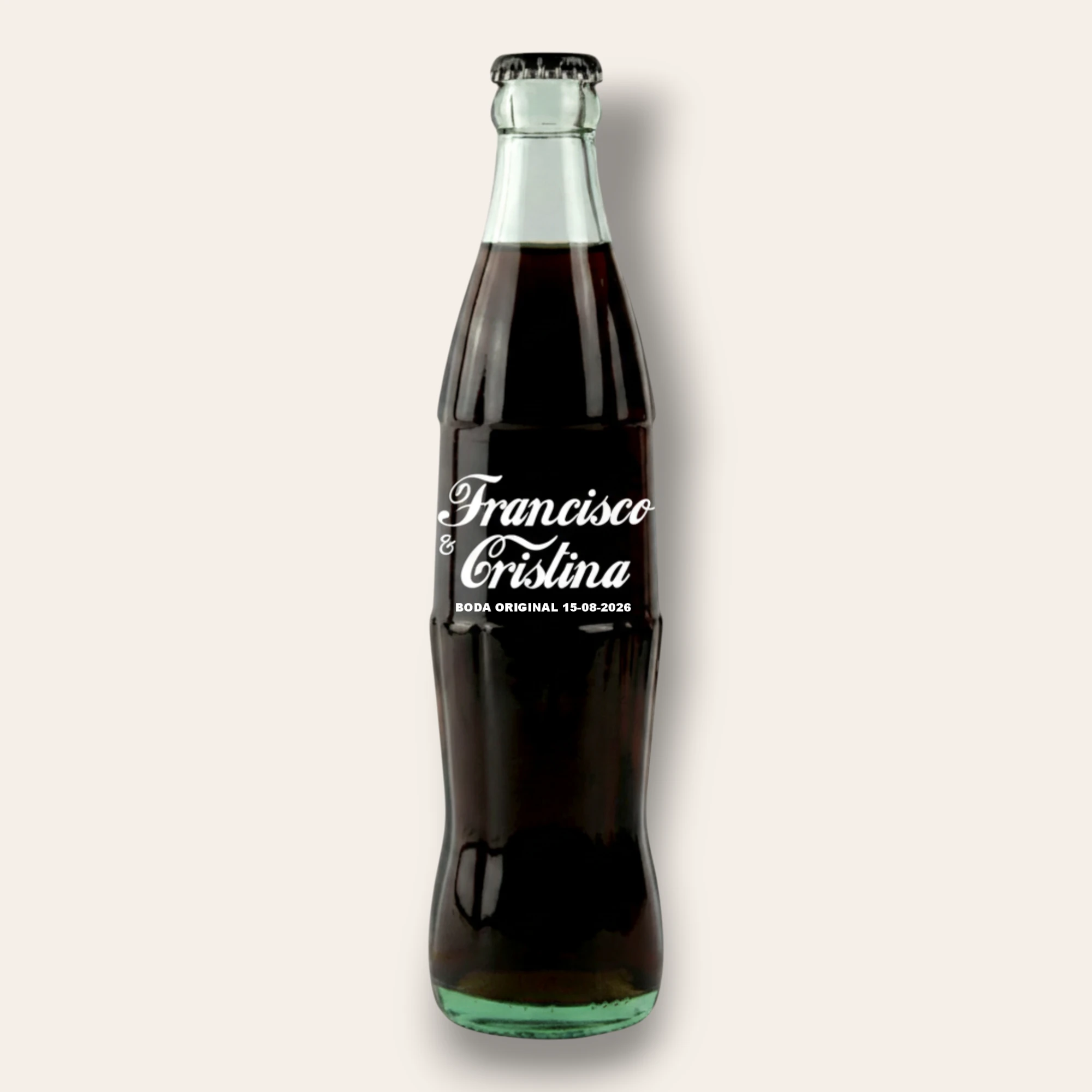 ¿Te imaginas servir una Coca-Cola y que en la botella aparezca tu nombre, la fecha de tu boda o una frase divertida para tu cumpleaños? Con nuestra pegatina personalizada Coca-Cola lo haces posible ✨. Un detalle pequeño pero súper efectivo, que transforma una bebida clásica en un recuerdo inolvidable para tus invitados.